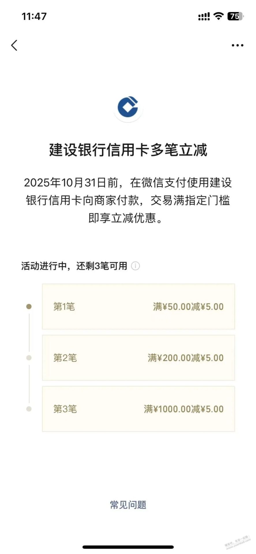 活动二:建行信用卡多笔立减